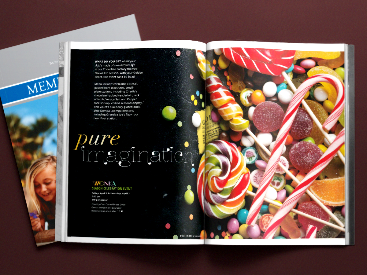 I created bi-monthly newsletters for the Jupiter, Florida location of the Ritz Carlton. I created illustrations, advertisements, and articles, and also converted these to a digital format for the Ritz TV channel. I frequently created customized posters for the Ritz Carlton, as well as in-house training manuals and brochures for Ritz Carlton employees.
